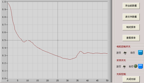 3.2.4 若按下“暫存曲線”按鈕,整條曲線會(huì)被暫存起來,這樣做的目的是為了在同一坐標(biāo)下顯示多條曲線。