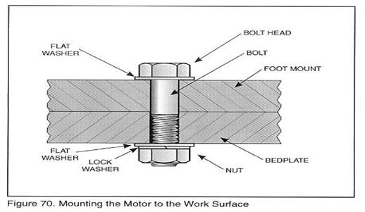 A. 用裝配螺釘,螺母和墊圈將電機安裝到工作表面,如圖55所示,用手工擰緊。