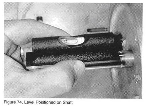 A.將水平儀放置在電機軸上,如圖57所示,觀察氣泡的位置。務必使得水平儀放置在軸的光滑表面上,一些軸是階梯軸,所以水平儀必須放置在其中一段上面,如圖57所示。