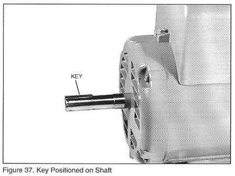 H.將鍵從制動(dòng)器輪轂的鍵槽內(nèi)取出,重新放入電機(jī)軸上的鍵槽內(nèi),將之放置與軸的末端平齊的位置,如圖37所示