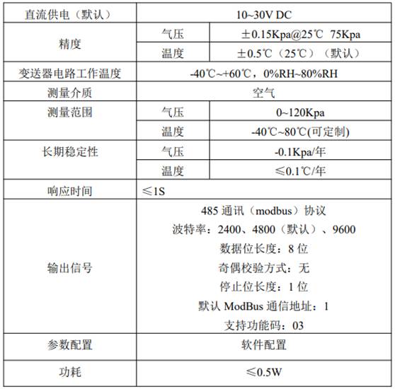 圖2-6 大氣壓力傳感器參數(shù)表
