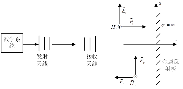 圖2實驗系統(tǒng)波長測量原理圖和電磁波垂直入射模型