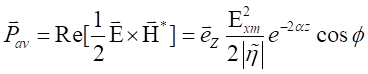 有耗媒質(zhì)中,坡印延矢量中有一部隨時(shí)間以2倍于電磁波頻率的頻率來(lái)回振蕩的成份。坡印廷矢量的時(shí)間平均值為: