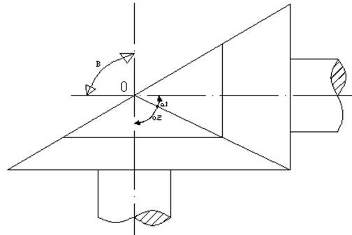 實驗2、用所給測量工具計算出所搭接的傳動機構(gòu)的兩軸的交錯角和小齒輪大齒輪的分度圓錐角。如圖(交錯角為兩輪軸線夾角)