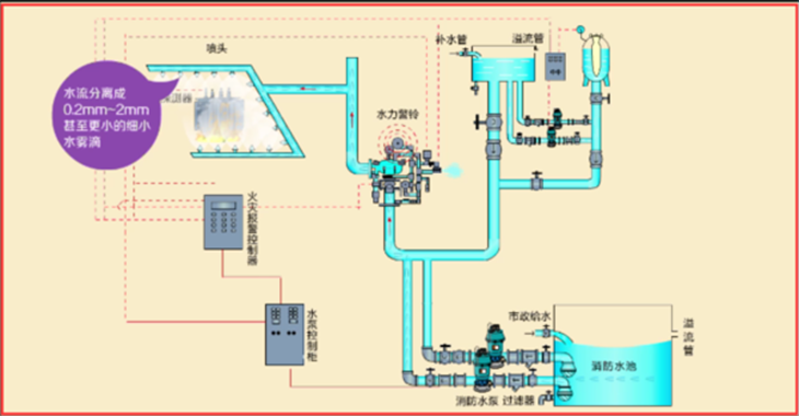 1、自動噴水滅火系統(tǒng)是由灑水噴頭、報警閥組、水流報警裝置(水流指示器或壓力開關(guān))等組件,以及管道、供水設(shè)施等消防器材組成的,并能在發(fā)生火災(zāi)時噴水的自動滅火系統(tǒng)。自動噴水滅火系統(tǒng)在保護人身和財產(chǎn)安全方面具有安全可靠、經(jīng)濟實用、滅火成功率高等優(yōu)點。