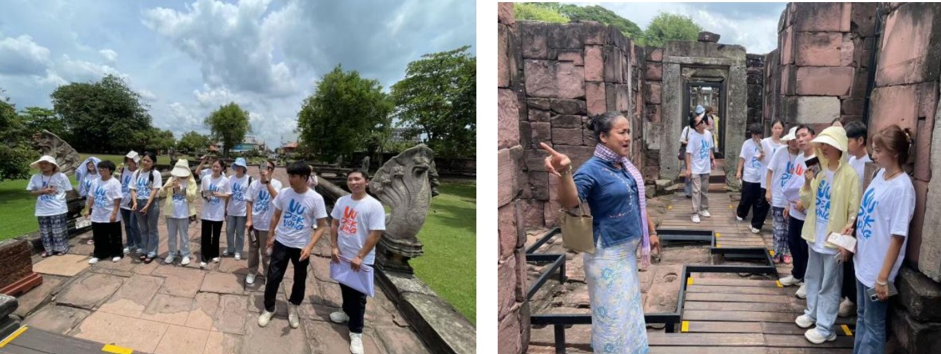同學們先后參觀了呵叻府的多處歷史古跡。潘南遷古寺的浮雕展現著泰國古代雕塑藝術的魅力,坦布拉薩特考古遺址留存著古老文明的印記,還有“高棉藝術明珠”之稱的披邁歷史公園,以宏大的石砌建筑重現了前吳哥時期的景象。