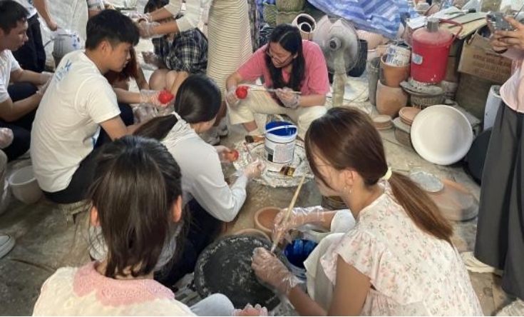 研學活動把自然科學與創(chuàng)意產業(yè)融合到了一起。在呵叻府的“博物館集群”,石化木的年輪、古象化石和恐龍遺骸,直觀呈現了地球生命的演化歷程;在丹奎恩陶藝村,同學們在工匠老師指導下體驗手工制陶,感受泰國傳統制陶技藝的傳承;Terminal 21中心的數字藝術展,用科技講述文化故事,展現了泰國當代藝術的先鋒活力。