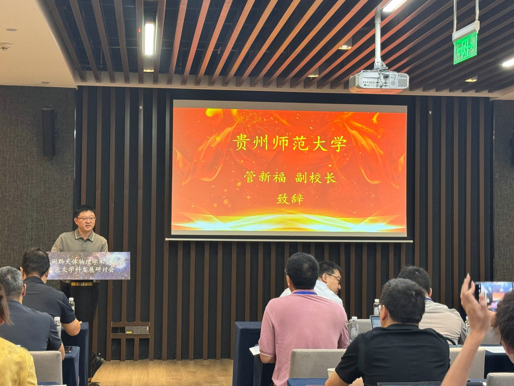 管新福在致辭中介紹了貴州師范大學(xué)的總體情況,對中國科學(xué)技術(shù)大學(xué)、廈門大學(xué)、貴州大學(xué)等高校的領(lǐng)導(dǎo)和專家長期以來對貴州師范大學(xué)天文學(xué)科的建設(shè)提供的大力幫助表示感謝,希望通過本次會議的召開,匯聚各方智慧,共同探討天文學(xué)學(xué)科建設(shè)、本科及研究生人才培養(yǎng)以及前沿科學(xué)研究等熱點(diǎn)問題,促進(jìn)學(xué)科交叉融合,激發(fā)創(chuàng)新思維,為三省區(qū)乃至國家的天文事業(yè)和社會發(fā)展貢獻(xiàn)力量。