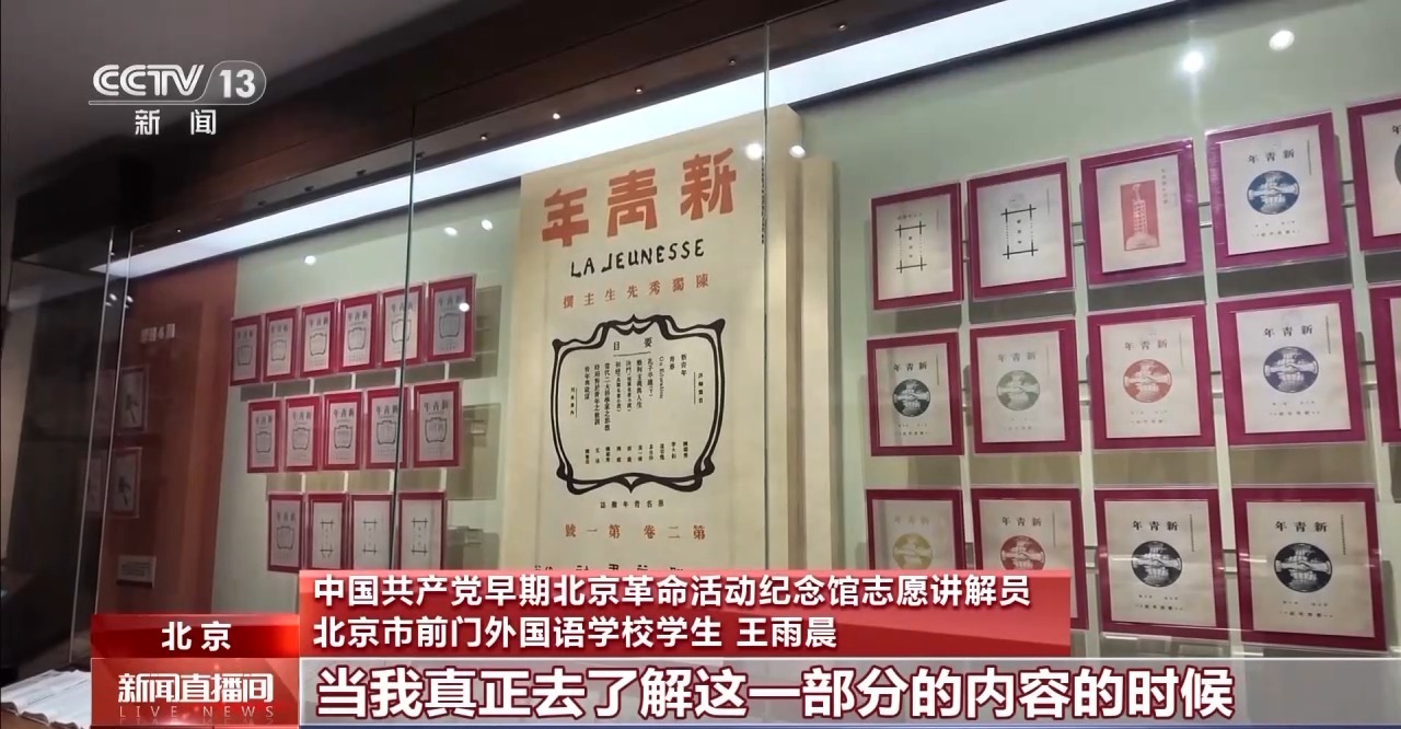 中國共產(chǎn)黨早期北京革命活動(dòng)紀(jì)念館志愿講解員 北京市前門外國語學(xué)校學(xué)生 王雨晨:像我剛才介紹到的銅燒水壺,毛澤東閱讀的《明恥篇》批注過的封面,《新青年》的一些展品,當(dāng)我真正去了解這一部分的內(nèi)容的時(shí)候,發(fā)現(xiàn)每一件文物都有自己背后的故事。需要把這種精神傳播給更多的人,讓更多人去了解這段歷史。